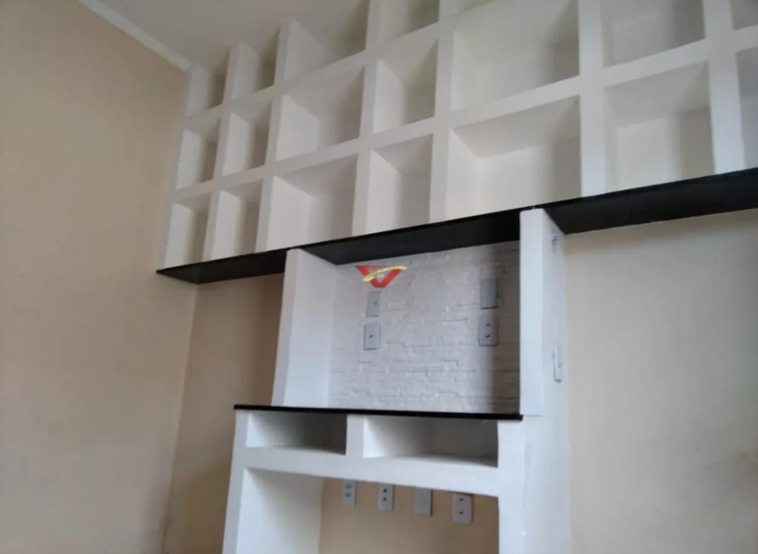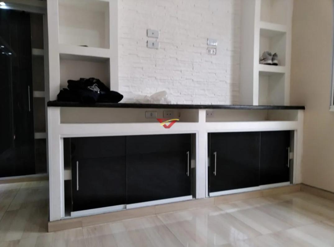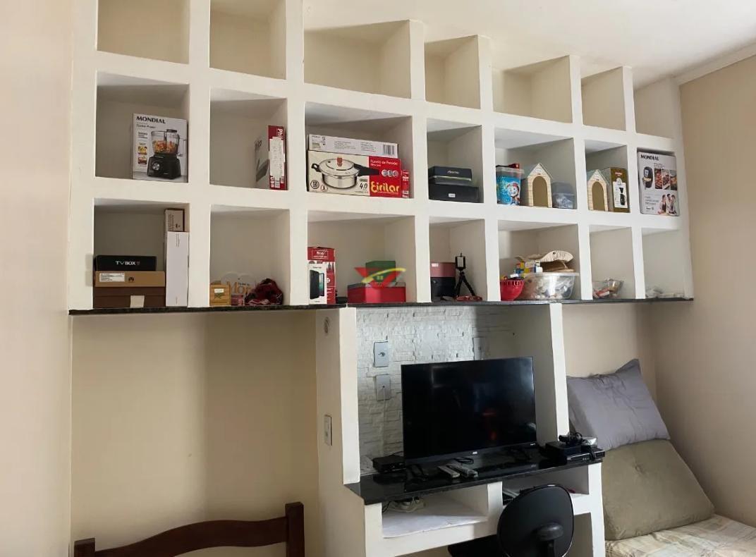 Bancada + estante embutida no dormitório e suíte;